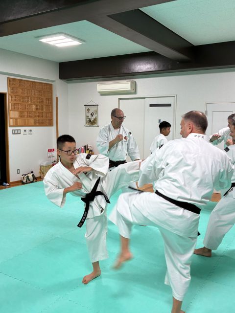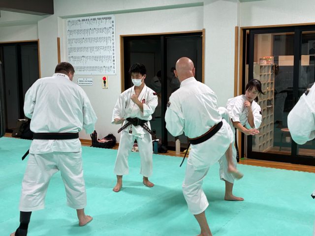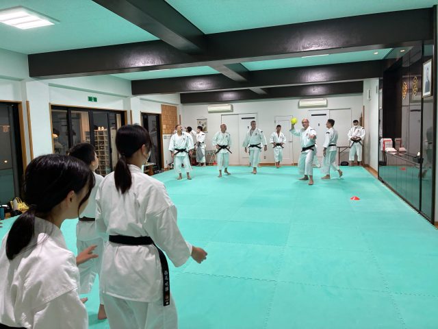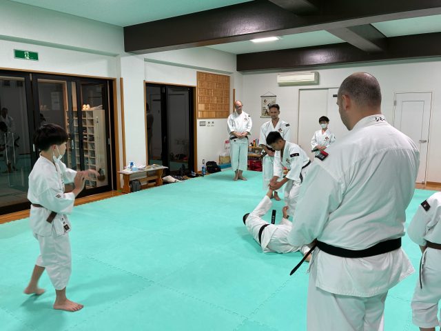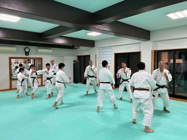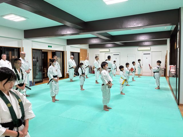 本部道院の少年部拳士、一般拳士たちと、和気あいあい、楽しく学び合いました。