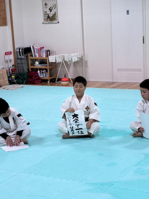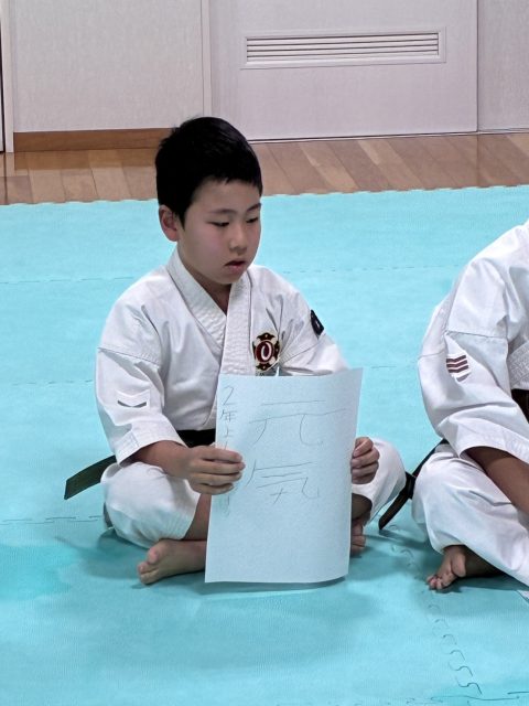 お家の都合もあって、全員が参座できませんでしたが、皆さん今年の抱負を書き初めし、一人ひとり発表しました。