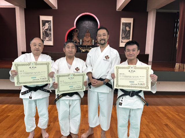 昨年、私が道院長に就任して、門信徒各位に修行する上での課題を課しました。合格された4名の先生方は、私の課題を真摯に受け止め、日頃の修練においても門信徒への指導後、各自が目標とする昇格考試に向けた自己研鑽を行ってきました。